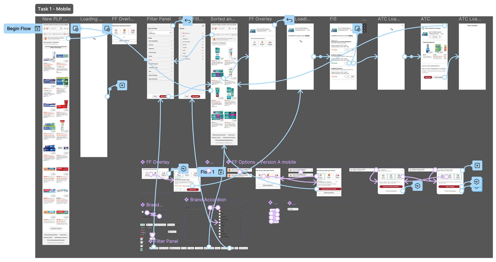 After securing stakeholder buy-in on initial concepts, we developed clickable prototypes for iterative usability testing via D-scout. These sessions validated that the designs significantly improved discovery speed, price comparison, and promotion visibility.